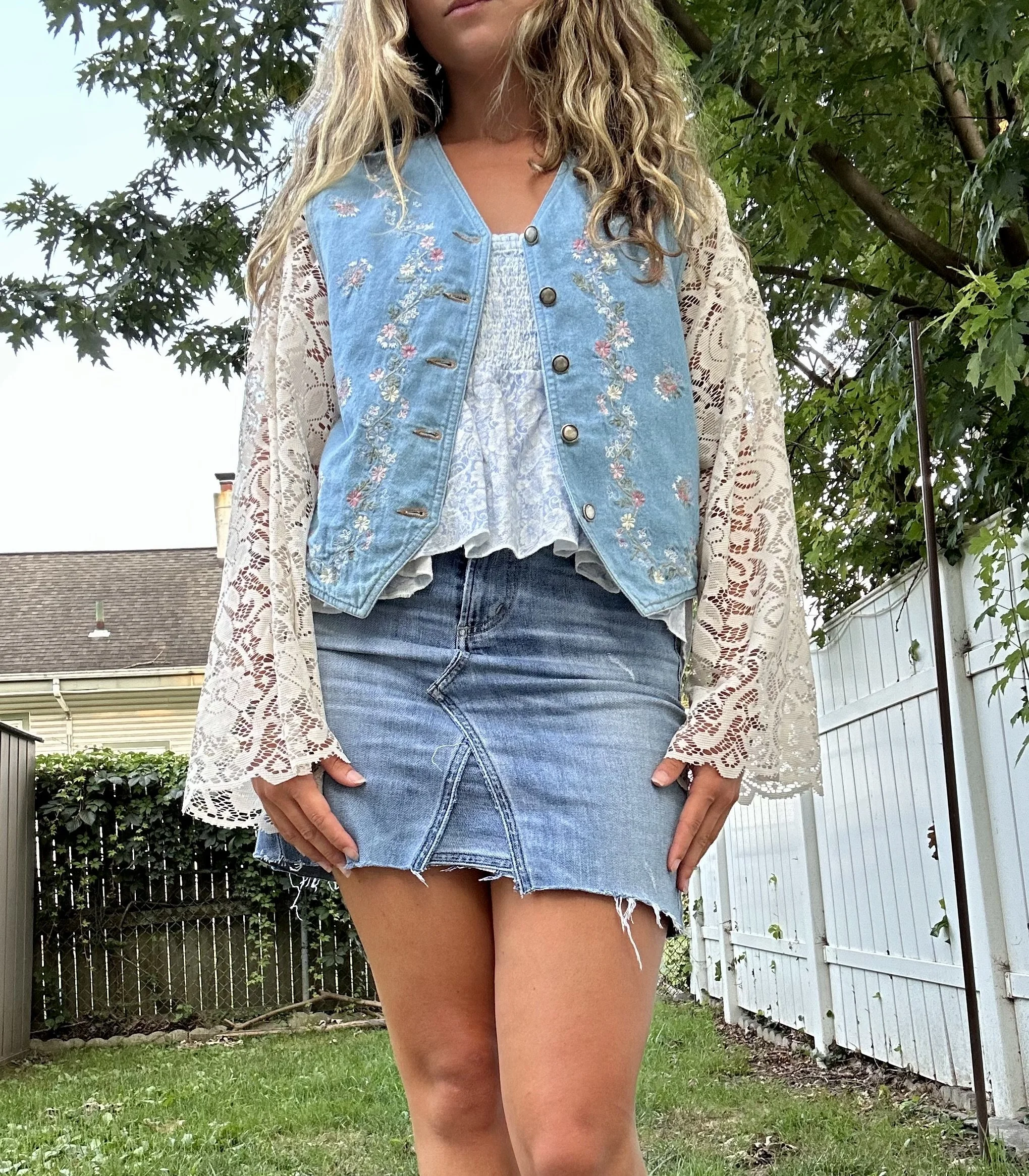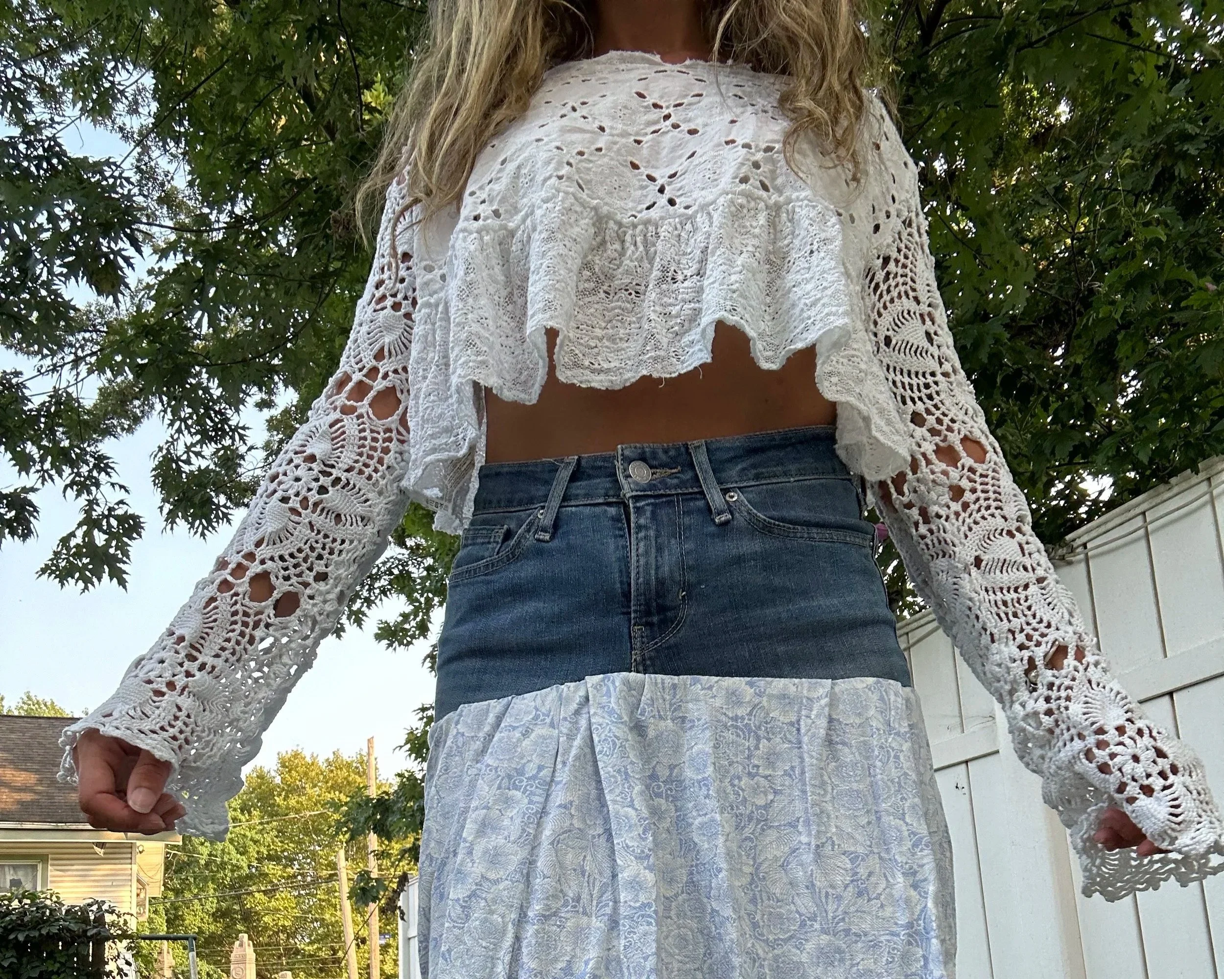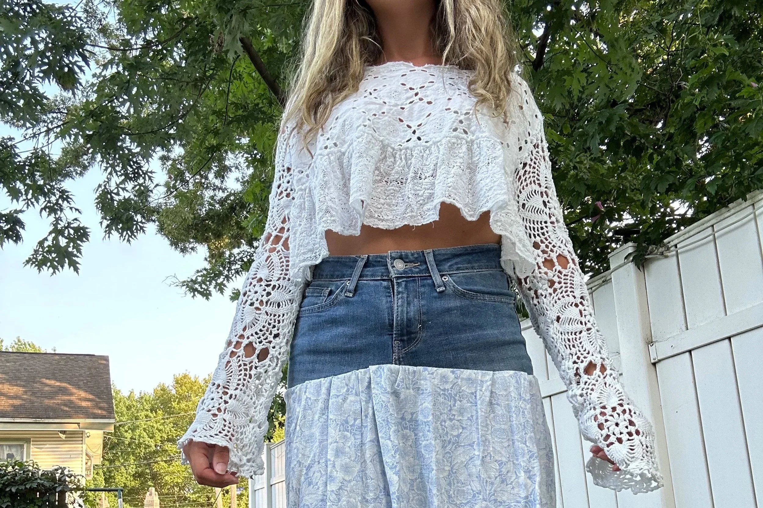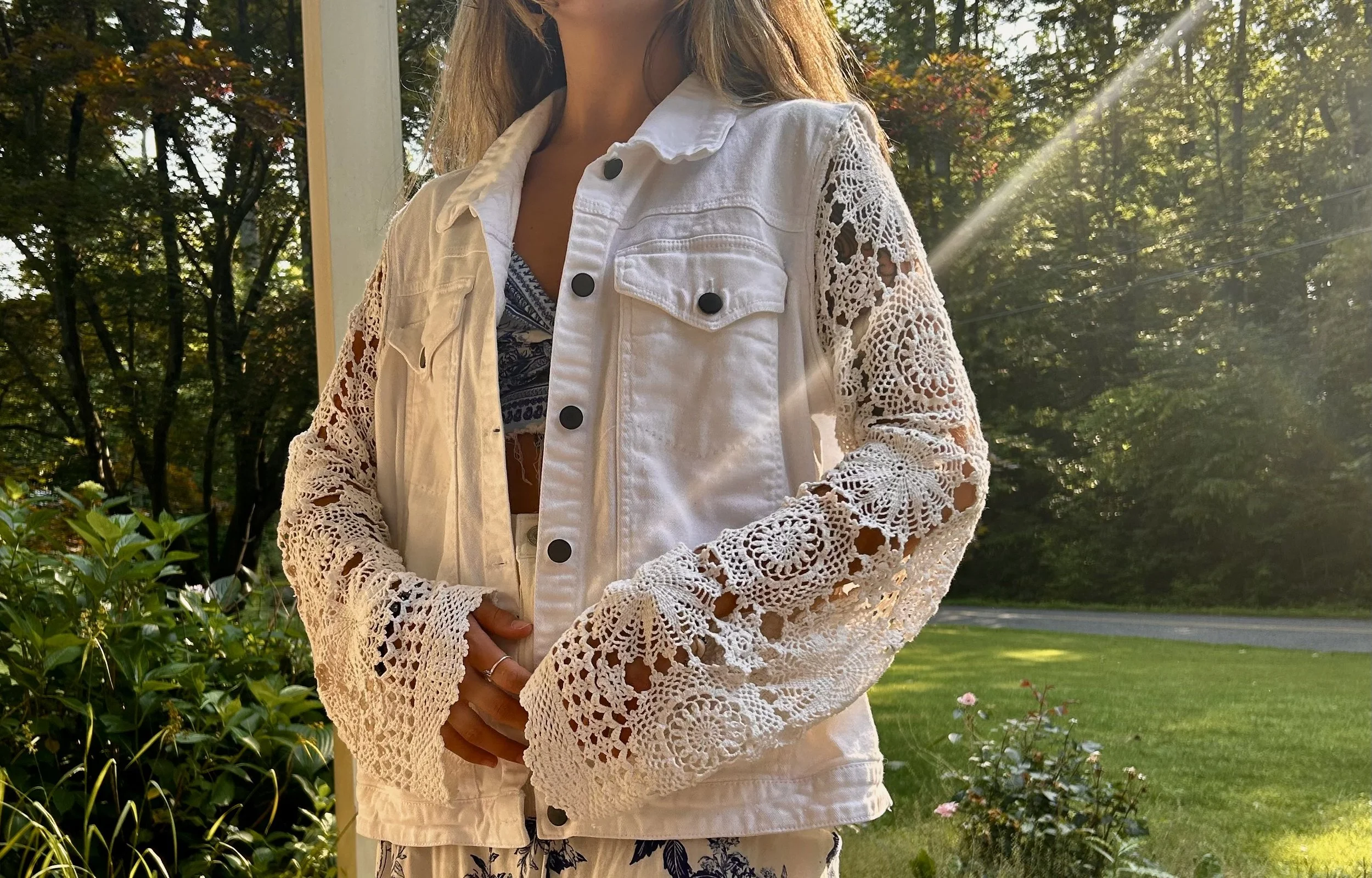 shop Lace jean jacket $100.00 Maple cropped tee $55.00 Vintage crochet mandala tee $50.00 Cozy waffle knit button down $75.00 Sold out Blue + yellow crochet crewneck $85.00 Pink + green crochet crew $80.00 Cream crochet long sleeve $75.00 Embroidered crew neck $55.00 Hummingbird skirt $75.00 floral embroidered corduroys $80.00 Butterfly jumpsuit $135.00 Sold out Boho top $70.00 Sold out Crochet flares $80.00 Sold out Lace & denim jacket $95.00 Sold out Floral embroidery & lace Jean jacket $95.00 Sold out Butterfly overalls $150.00 Quilted sleeve jacket $85.00 Butterfly romper $80.00 Flowy doll top $55.00 Levi’s split skirt $70.00 Dragonfly overalls $140.00 Beach day jeans $85.00 Sold out Crochet table runner top $75.00 Sold out Bloomer Jean shorts $70.00 Floral dress tank $68.00 Corduroy lace jacket $90.00 Denim sleeve surf shop tee $60.00 Euro summer set $140.00 Sold out Stones denim long sleeve $75.00 Sold out Floral and lace mini skirt $70.00 Crochet sleeve denim jacket $110.00 Sold out Mermaid denim shorts $65.00 True friend tote bag $70.00 Sold out Crochet sweater tank $68.00 Butterfly garden overalls $135.00 Sold out Dreamy beach pants $70.00 Sold out Star bell bottoms $120.00 Free heart tank $55.00 Beaded bag skirt $85.00 Upholstery corset top $68.00 upcycled crochet + corduroy flannel $75.00 Sold out upcycled flannel + corduroy shacket $75.00 Sold out sunset flannel sweater $50.00 Sold out rainbow zeppelin $60.00 Sold out re-embroidered carpenter jeans $80.00 washed out floral jeans $85.00 floral denim flares $85.00 Sold out flower power blanket jacket $100.00 Sold out re-embroidered jeans $90.00 Sold out floral flares $75.00 Sold out scrap-work corduroy jacket $80.00 Sold out re-embroidered boot cut jeans $70.00 Sold out patchy split button down $80.00 Sold out coastal cowgirl overalls $100.00 Sold out nostalgic hoodie + corduroy $72.00 Sold out clover waffle sweater $80.00 Sold out re-embroidered midi skirt $65.00 vintage calvin cuffs $45.00 Sold out canvas cuff pant $50.00 Sold out Dreamcatcher Jean Jacket $70.00 Sold out scrappy chic set $90.00 Sold out Ocean Tie Tank - Sand + Salt Collection $40.00 Sold out Blanket Blazer $70.00 Sold out Soft Doily Dress Tank $45.00 Sold out Lone Lily Bra Top - Sand + Salt $45.00 Sold out Curtain & Lace Denim Shirt $65.00 Sold out