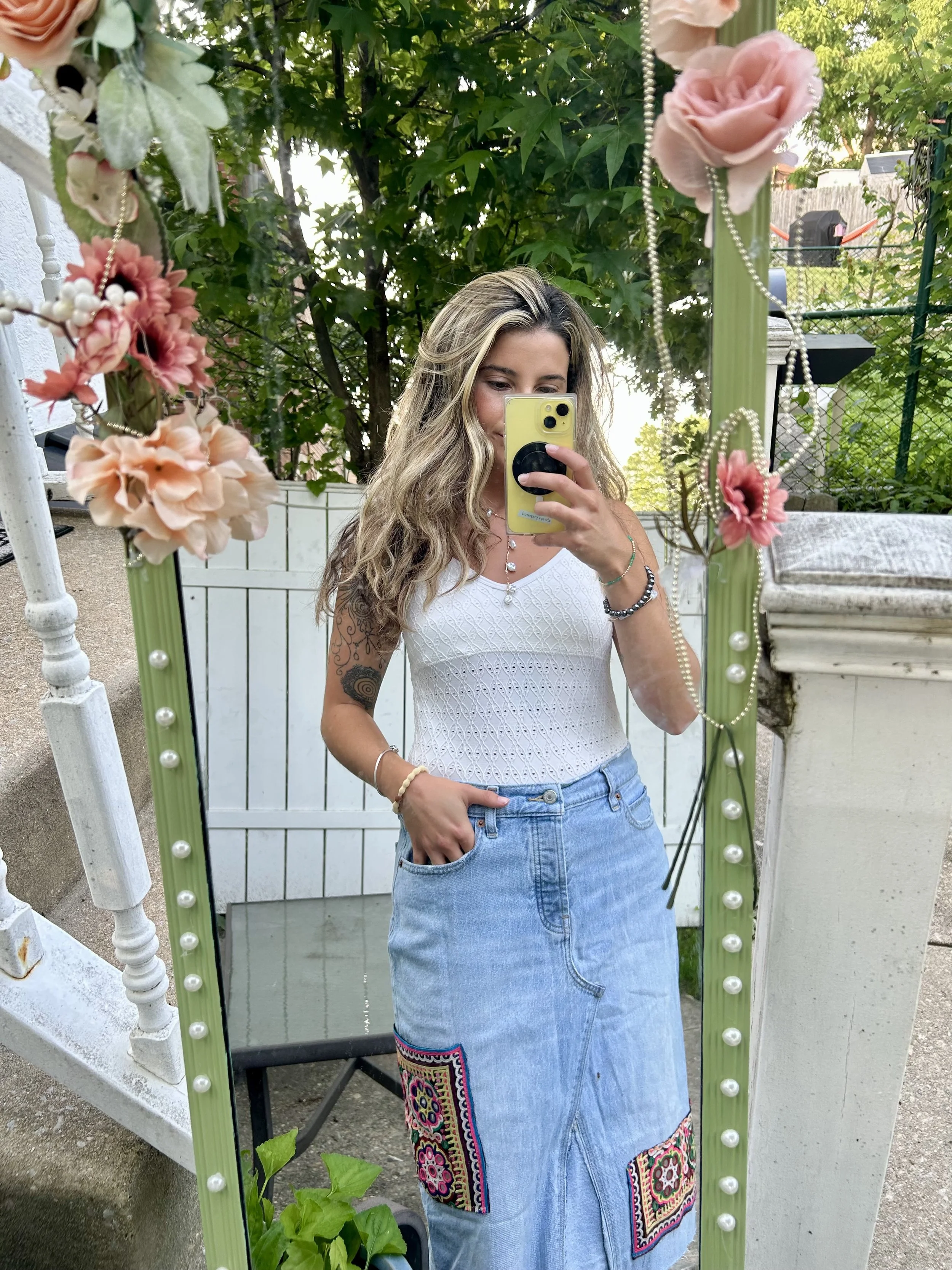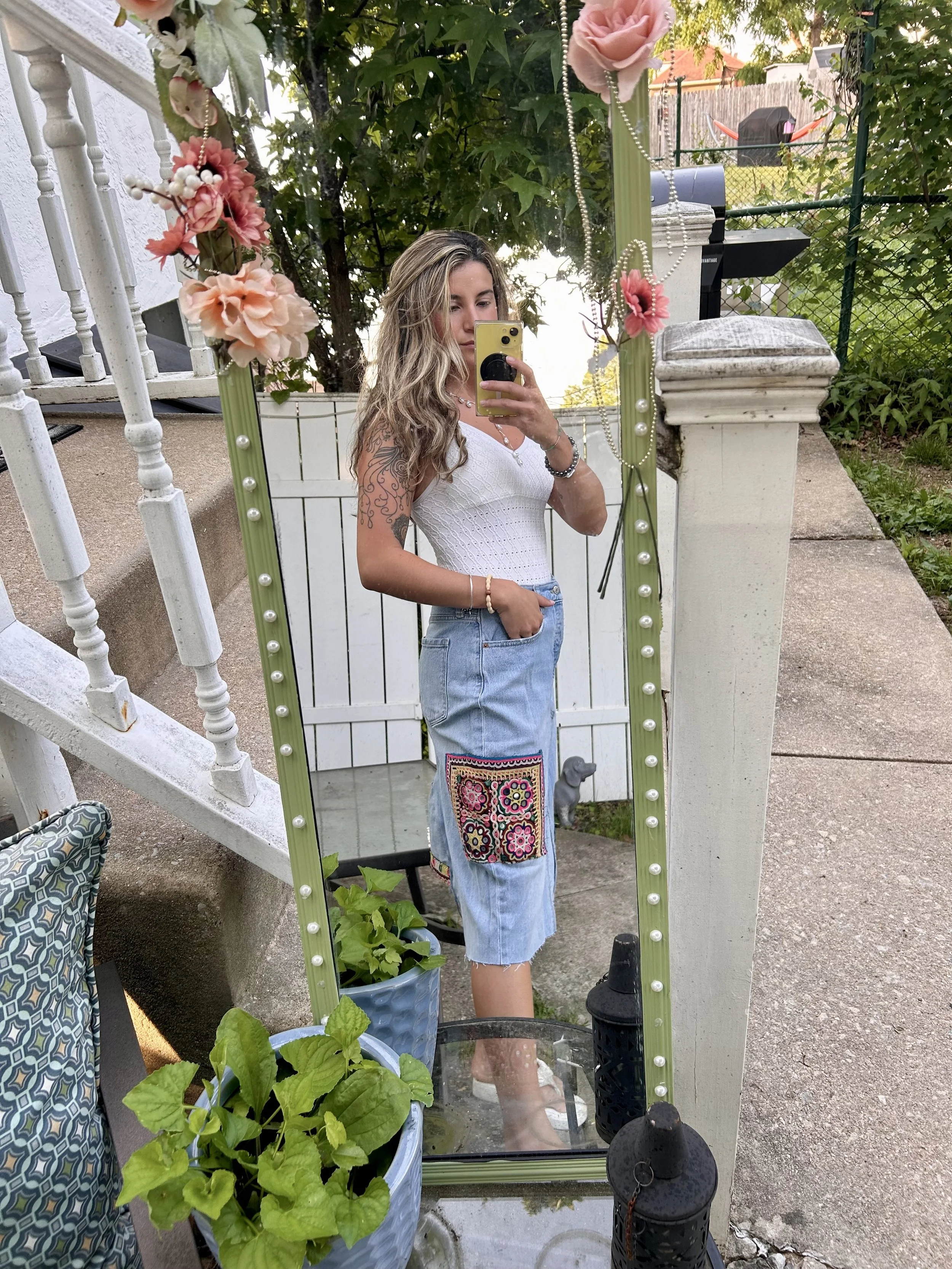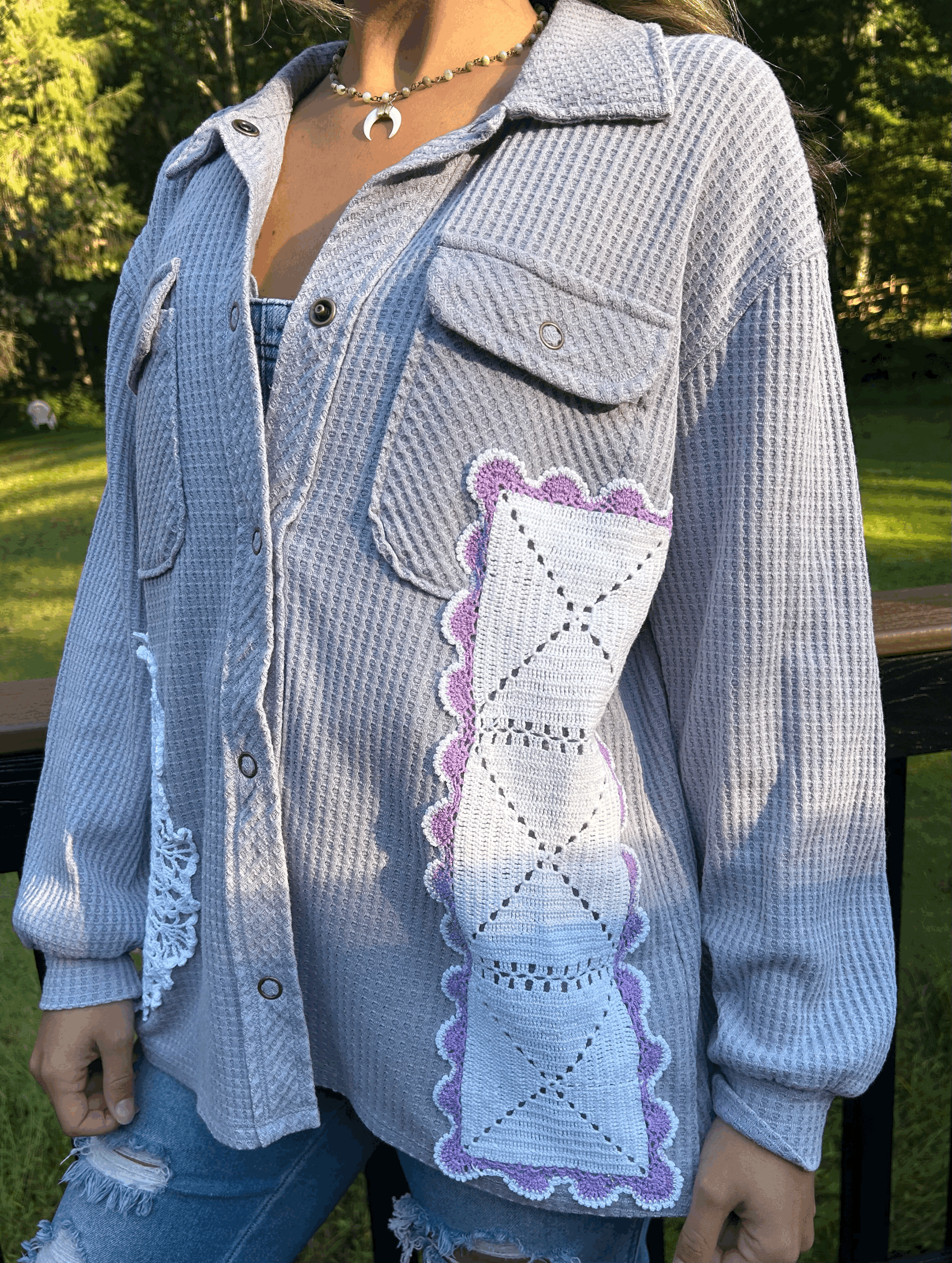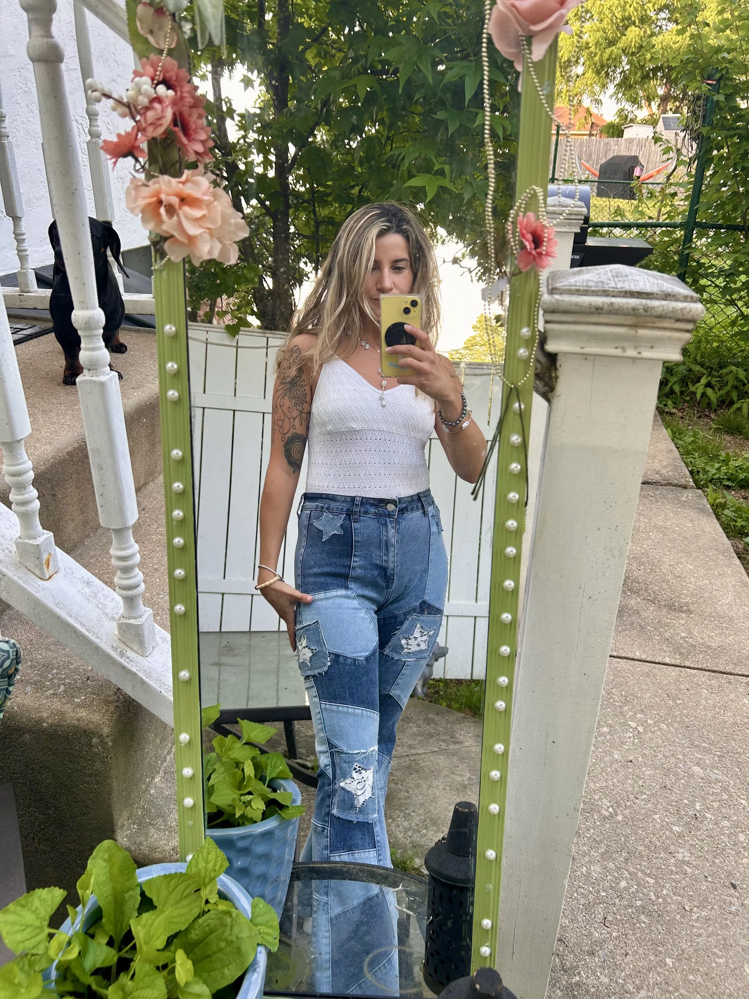 shop Lace jean jacket $100.00 Maple cropped tee $55.00 Vintage crochet mandala tee $50.00 Cozy waffle knit button down $75.00 Sold out Blue + yellow crochet crewneck $85.00 Pink + green crochet crew $80.00 Cream crochet long sleeve $75.00 Embroidered crew neck $55.00 Hummingbird skirt $75.00 floral embroidered corduroys $80.00 Butterfly jumpsuit $135.00 Sold out Boho top $70.00 Sold out Crochet flares $80.00 Sold out Lace & denim jacket $95.00 Sold out Floral embroidery & lace Jean jacket $95.00 Sold out Butterfly overalls $150.00 Quilted sleeve jacket $85.00 Butterfly romper $80.00 Flowy doll top $55.00 Levi’s split skirt $70.00 Dragonfly overalls $140.00 Beach day jeans $85.00 Sold out Crochet table runner top $75.00 Sold out Bloomer Jean shorts $70.00 Floral dress tank $68.00 Corduroy lace jacket $90.00 Denim sleeve surf shop tee $60.00 Euro summer set $140.00 Sold out Stones denim long sleeve $75.00 Sold out Floral and lace mini skirt $70.00 Crochet sleeve denim jacket $110.00 Sold out Mermaid denim shorts $65.00 True friend tote bag $70.00 Sold out Crochet sweater tank $68.00 Butterfly garden overalls $135.00 Sold out Dreamy beach pants $70.00 Sold out Star bell bottoms $120.00 Free heart tank $55.00 Beaded bag skirt $85.00 Upholstery corset top $68.00 upcycled crochet + corduroy flannel $75.00 Sold out upcycled flannel + corduroy shacket $75.00 Sold out sunset flannel sweater $50.00 Sold out rainbow zeppelin $60.00 Sold out re-embroidered carpenter jeans $80.00 washed out floral jeans $85.00 floral denim flares $85.00 Sold out flower power blanket jacket $100.00 Sold out re-embroidered jeans $90.00 Sold out floral flares $75.00 Sold out scrap-work corduroy jacket $80.00 Sold out re-embroidered boot cut jeans $70.00 Sold out patchy split button down $80.00 Sold out coastal cowgirl overalls $100.00 Sold out nostalgic hoodie + corduroy $72.00 Sold out clover waffle sweater $80.00 Sold out re-embroidered midi skirt $65.00 vintage calvin cuffs $45.00 Sold out canvas cuff pant $50.00 Sold out Dreamcatcher Jean Jacket $70.00 Sold out scrappy chic set $90.00 Sold out Ocean Tie Tank - Sand + Salt Collection $40.00 Sold out Blanket Blazer $70.00 Sold out Soft Doily Dress Tank $45.00 Sold out Lone Lily Bra Top - Sand + Salt $45.00 Sold out Curtain & Lace Denim Shirt $65.00 Sold out