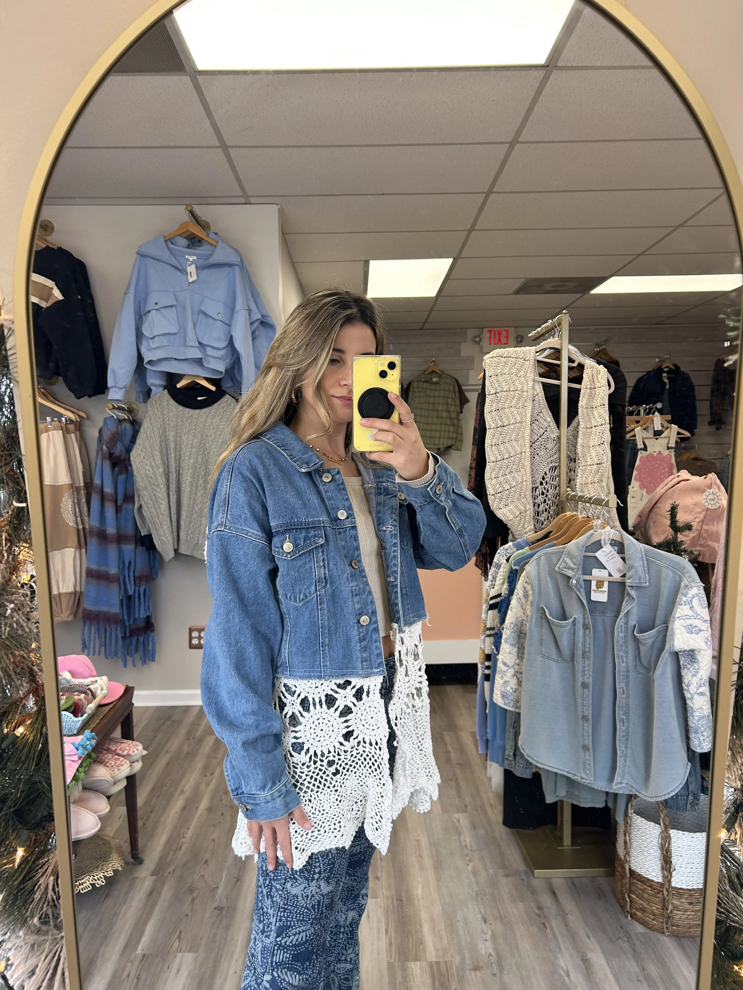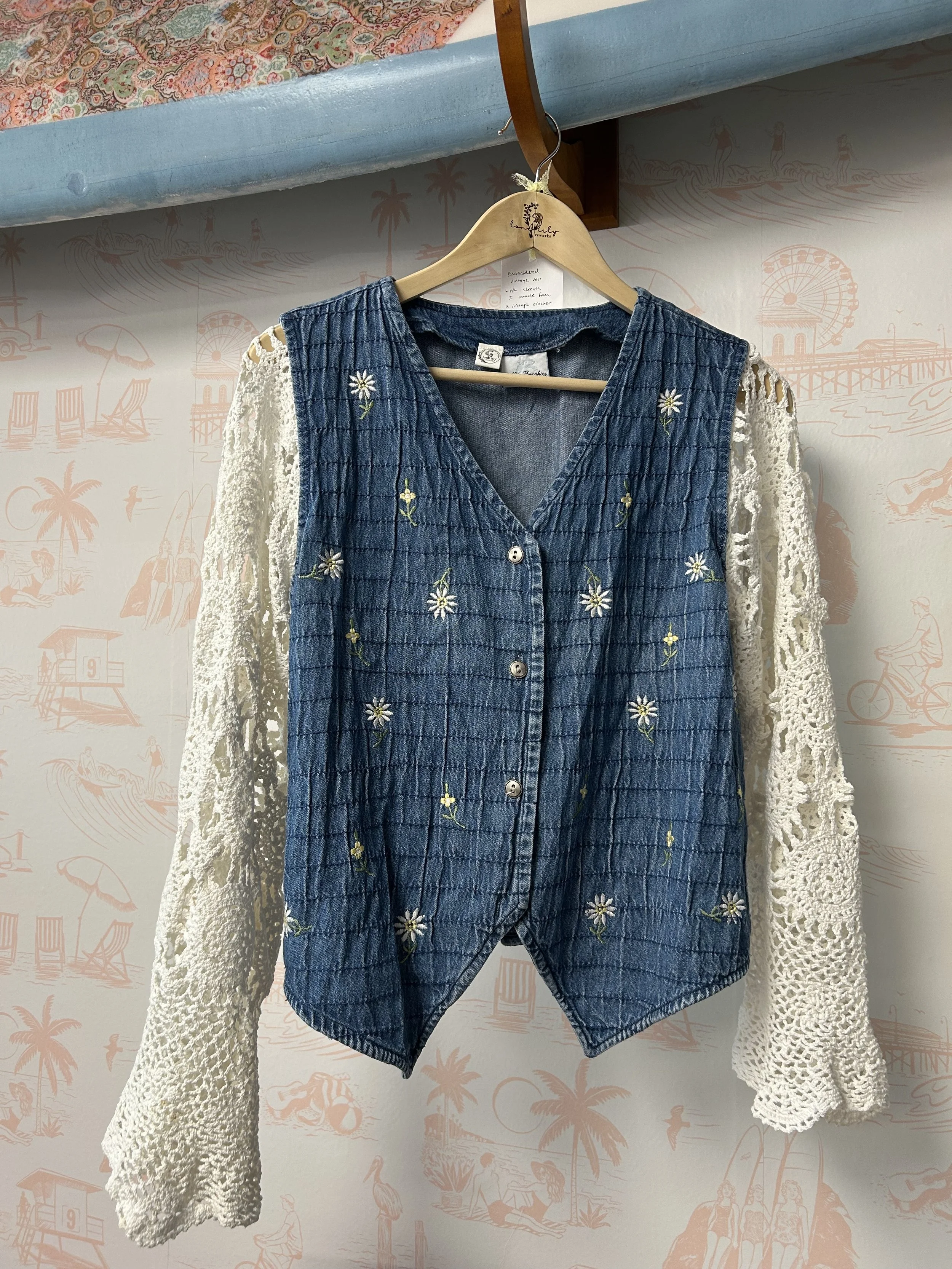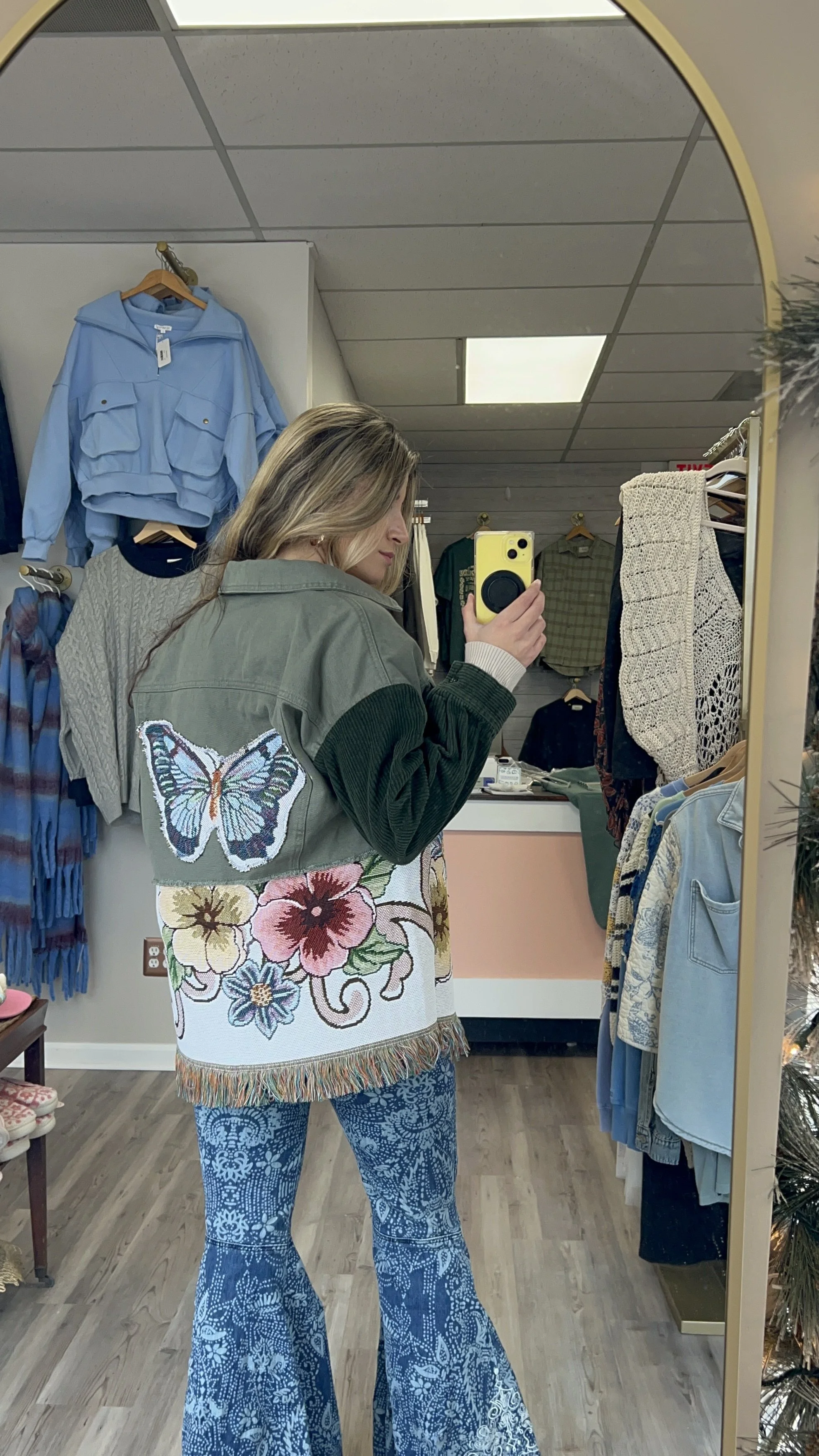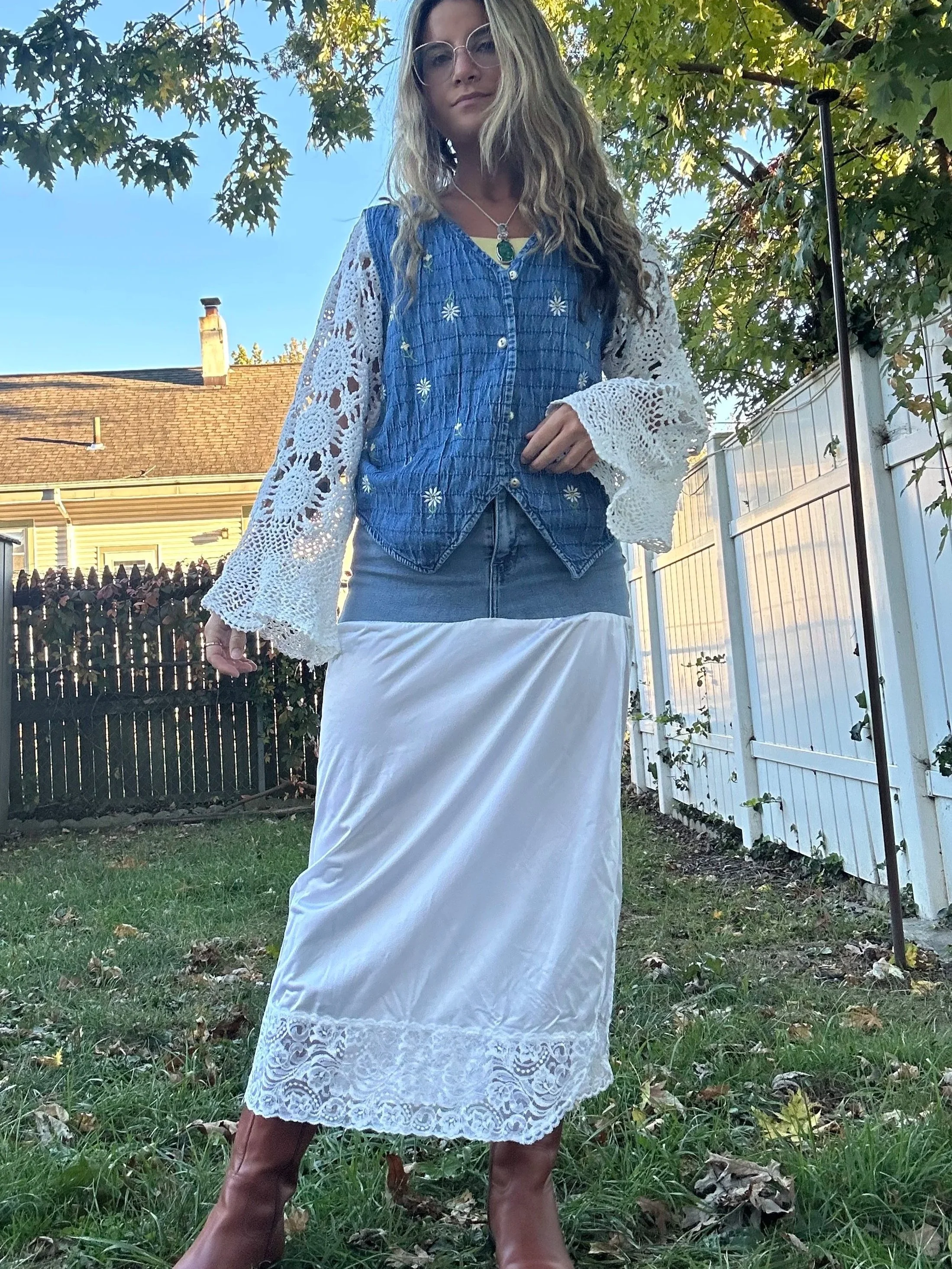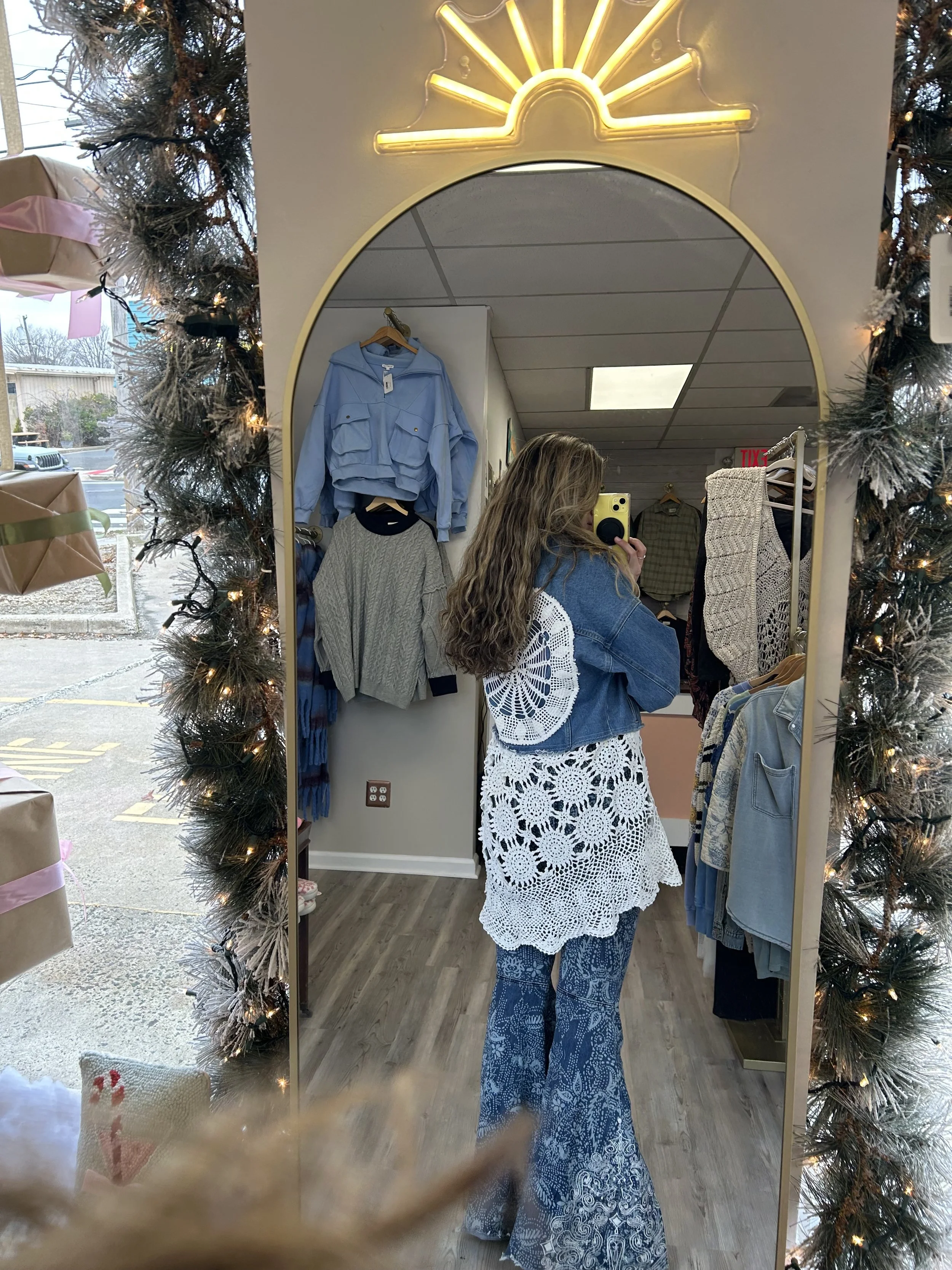 shop Doily dream sweater $90.00 Vintage denim + Lace jacket $110.00 Lace cream sweater $95.00 Lace + denim jacket $110.00 Silver springs jacket $115.00 Vintage lace duster $145.00 Sold out Butterfly garden jacket $200.00 Butterfly garden jacket $215.00 knit overall sweater $90.00 flannel + corduroy knit $80.00 Sold out Lace flannel sweater $92.00 Rose blanket shacket $98.00 Blue Jean sweater $90.00 Sold out Corduroy scrap work jacket $100.00 Doily jean jacket $110.00 Floral embroidered skirt $68.00 Flannel flares $75.00 1970s slip & denim skirt $75.00 Pink crochet jacket $95.00 Daisy crochet jacket $95.00 Tea party Overalls $135.00 1970s denim slip skirt $70.00 Butterfly overall dress $120.00 Lace jean jacket $100.00 Sold out Maple cropped tee $55.00 Vintage crochet mandala tee $50.00 Sold out Cozy waffle knit button down $75.00 Sold out Blue + yellow crochet crewneck $85.00 Pink + green crochet crew $80.00 Cream crochet long sleeve $75.00 Sold out Embroidered crew neck $55.00 Hummingbird skirt $75.00 floral embroidered corduroys $80.00 Butterfly jumpsuit $135.00 Sold out Boho top $70.00 Sold out Crochet flares $80.00 Sold out Lace & denim jacket $95.00 Sold out Floral embroidery & lace Jean jacket $95.00 Sold out Butterfly overalls $150.00 Sold out Quilted sleeve jacket $85.00 Butterfly romper $80.00 Flowy doll top $55.00 Levi’s split skirt $70.00 Dragonfly overalls $140.00 Sold out Beach day jeans $85.00 Sold out Crochet table runner top $75.00 Sold out Bloomer Jean shorts $70.00 Floral dress tank $68.00 Corduroy lace jacket $90.00 Denim sleeve surf shop tee $60.00 Euro summer set $140.00 Sold out Stones denim long sleeve $75.00 Sold out Floral and lace mini skirt $70.00 Crochet sleeve denim jacket $110.00 Sold out Mermaid denim shorts $65.00 True friend tote bag $70.00 Sold out Crochet sweater tank $68.00 Butterfly garden overalls $135.00 Sold out Dreamy beach pants $70.00 Sold out Star bell bottoms $120.00 Free heart tank $55.00 Beaded bag skirt $85.00 Upholstery corset top $68.00 upcycled crochet + corduroy flannel $75.00 Sold out upcycled flannel + corduroy shacket $75.00 Sold out sunset flannel sweater $50.00 Sold out rainbow zeppelin $60.00 Sold out re-embroidered carpenter jeans $80.00 washed out floral jeans $85.00 floral denim flares $85.00 Sold out flower power blanket jacket $100.00 Sold out re-embroidered jeans $90.00 Sold out floral flares $75.00 Sold out scrap-work corduroy jacket $80.00 Sold out re-embroidered boot cut jeans $70.00 Sold out patchy split button down $80.00 Sold out coastal cowgirl overalls $100.00 Sold out nostalgic hoodie + corduroy $72.00 Sold out clover waffle sweater $80.00 Sold out re-embroidered midi skirt $65.00 vintage calvin cuffs $45.00 Sold out canvas cuff pant $50.00 Sold out Dreamcatcher Jean Jacket $70.00 Sold out scrappy chic set $90.00 Sold out Ocean Tie Tank - Sand + Salt Collection $40.00 Sold out Blanket Blazer $70.00 Sold out Soft Doily Dress Tank $45.00 Sold out Lone Lily Bra Top - Sand + Salt $45.00 Sold out Curtain & Lace Denim Shirt $65.00 Sold out