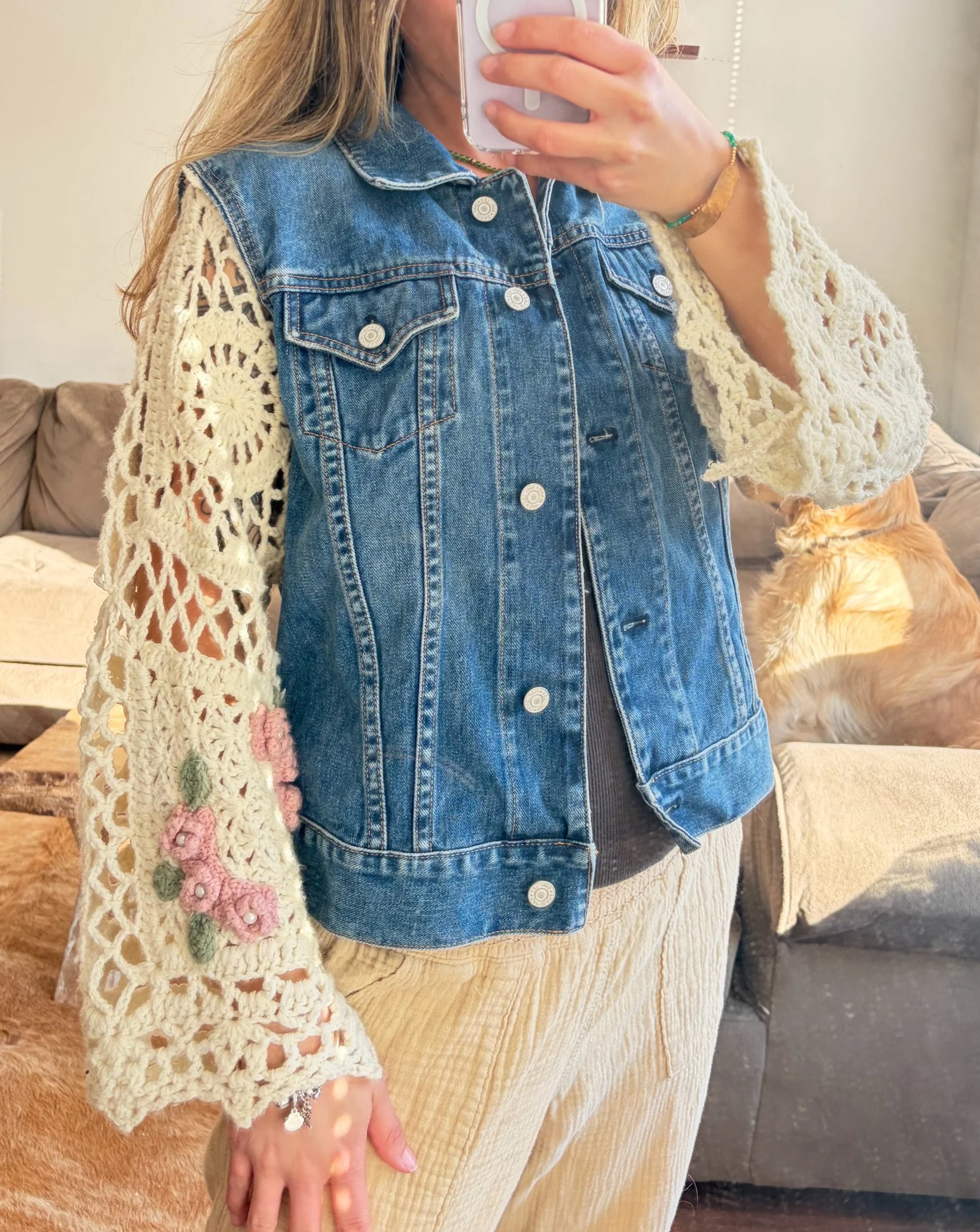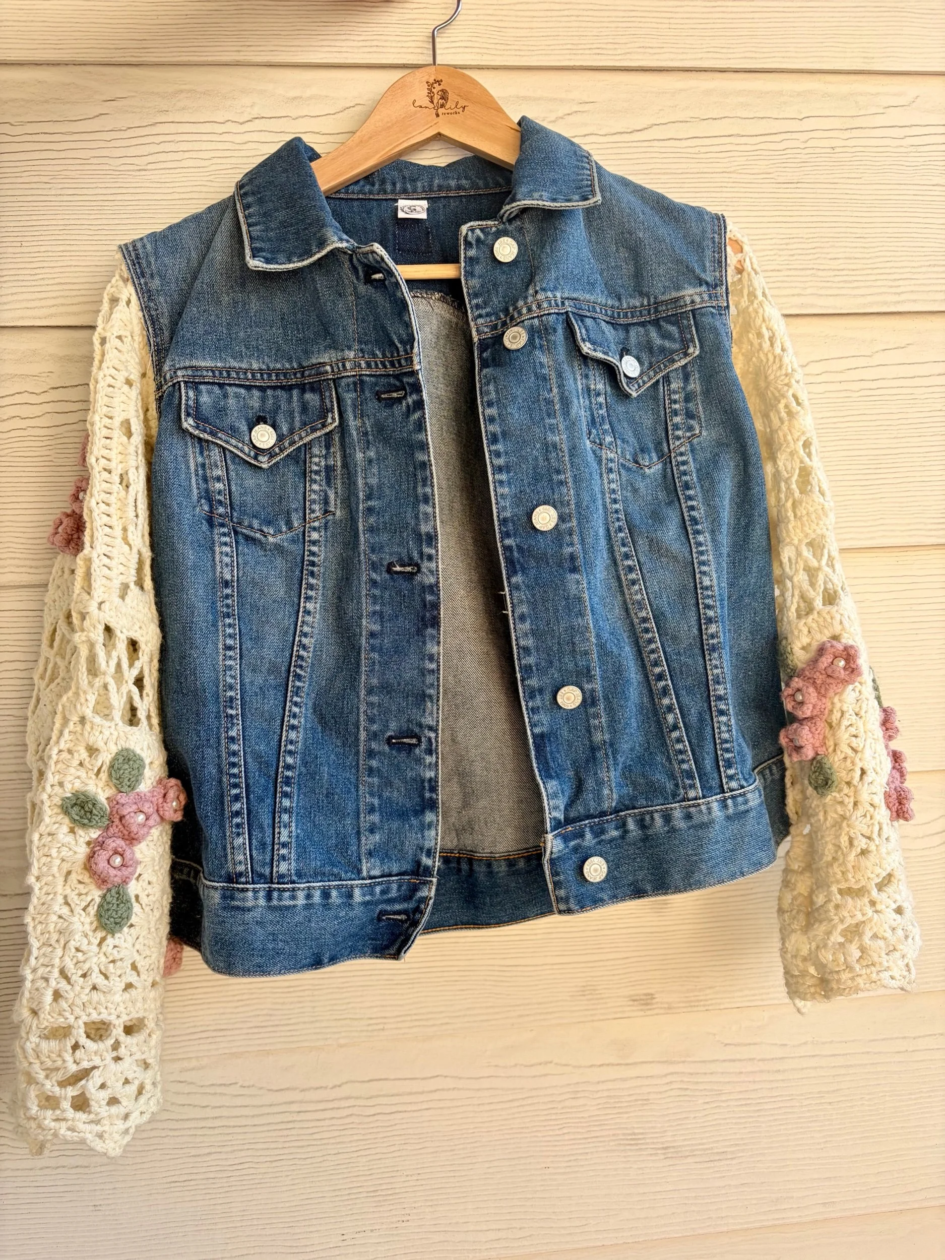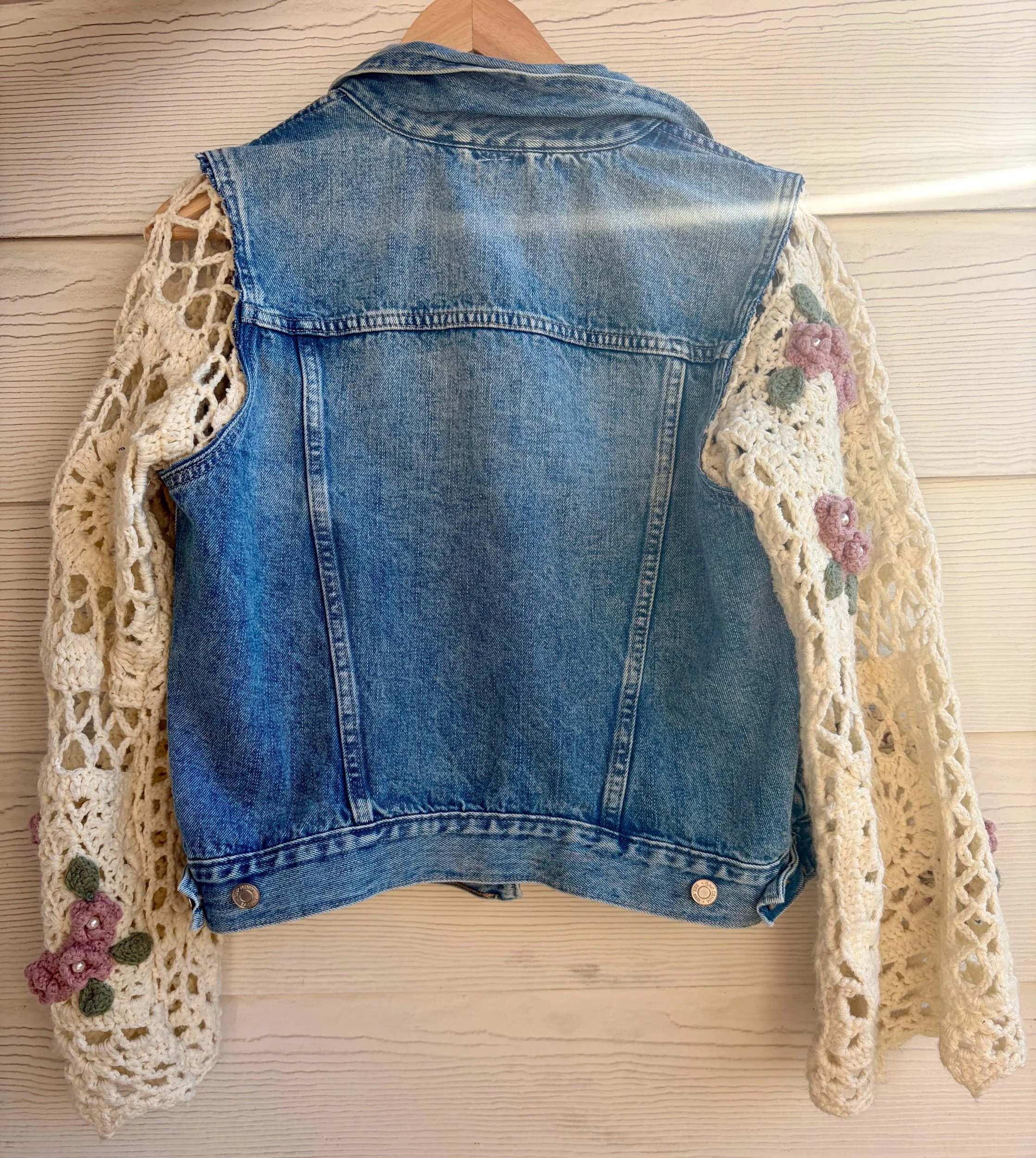 shop › blooming pearl jacket πΈ Image 1 of 5 Image 2 of 5 Image 3 of 5 Image 4 of 5 Image 5 of 5 blooming pearl jacket πΈ $160.00 cozy crochet sleeves made from a granny square blanket with pearls and floral details πΈπ·β»οΈsize small Add To Cart Added! cozy crochet sleeves made from a granny square blanket with pearls and floral details πΈπ·β»οΈsize small