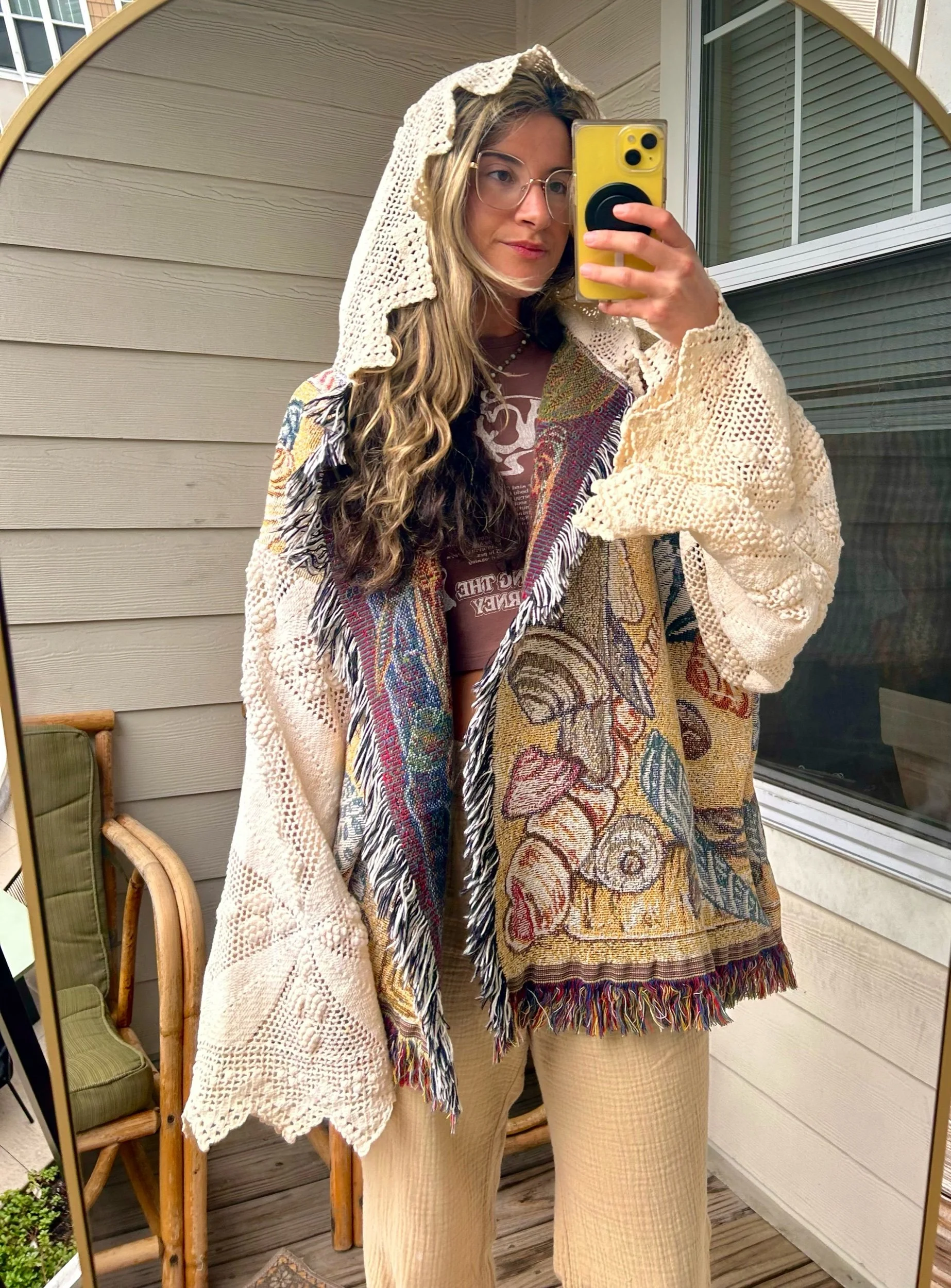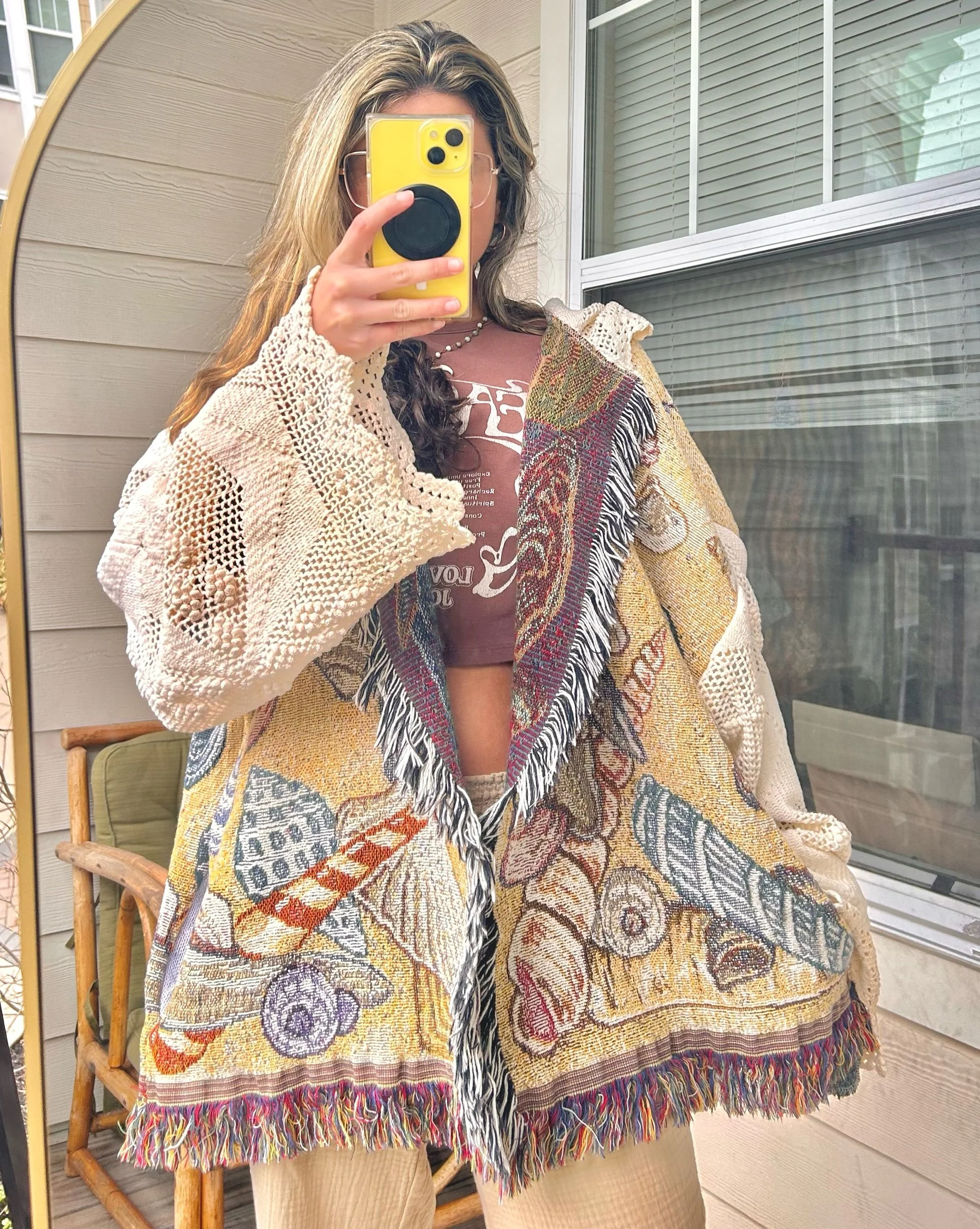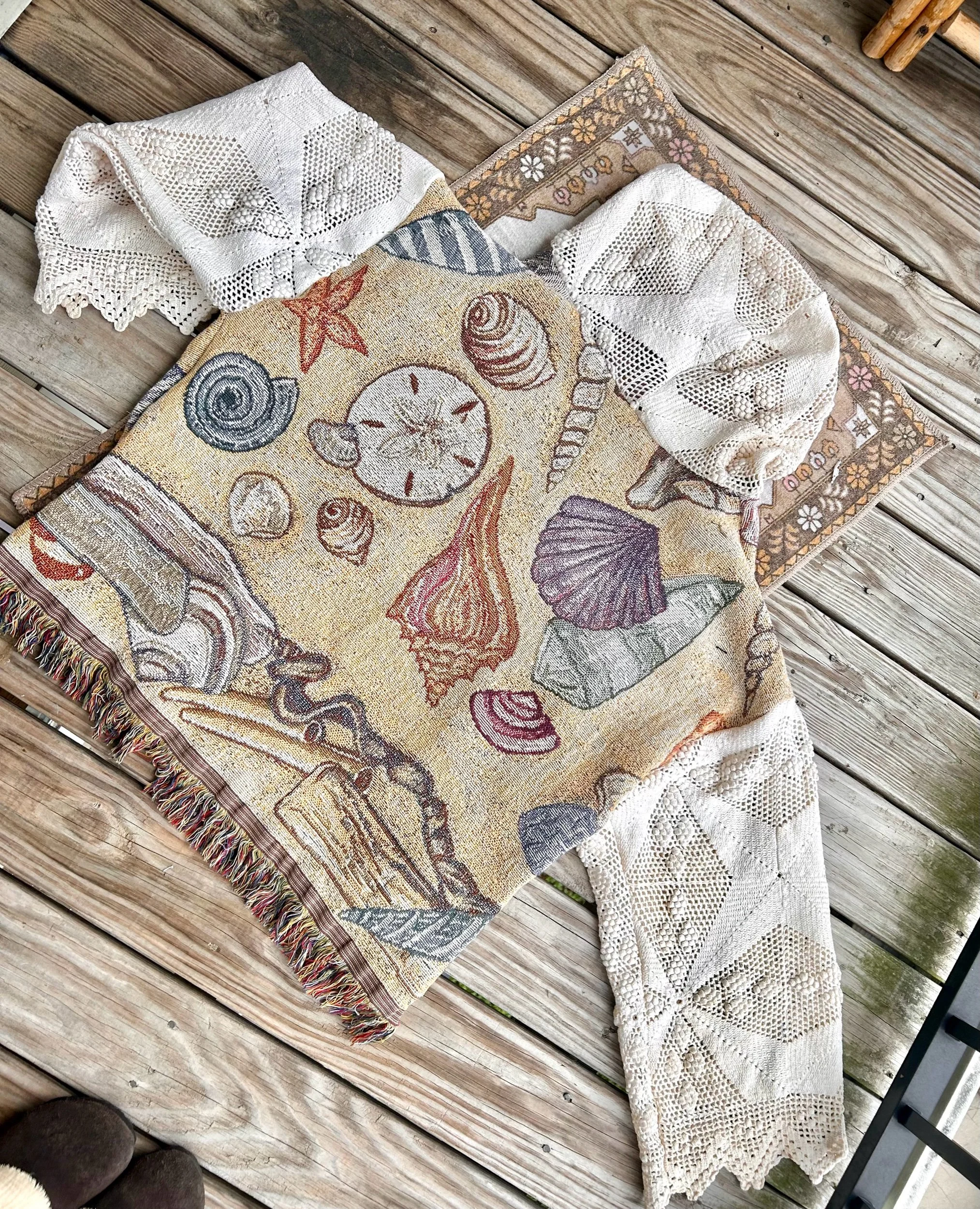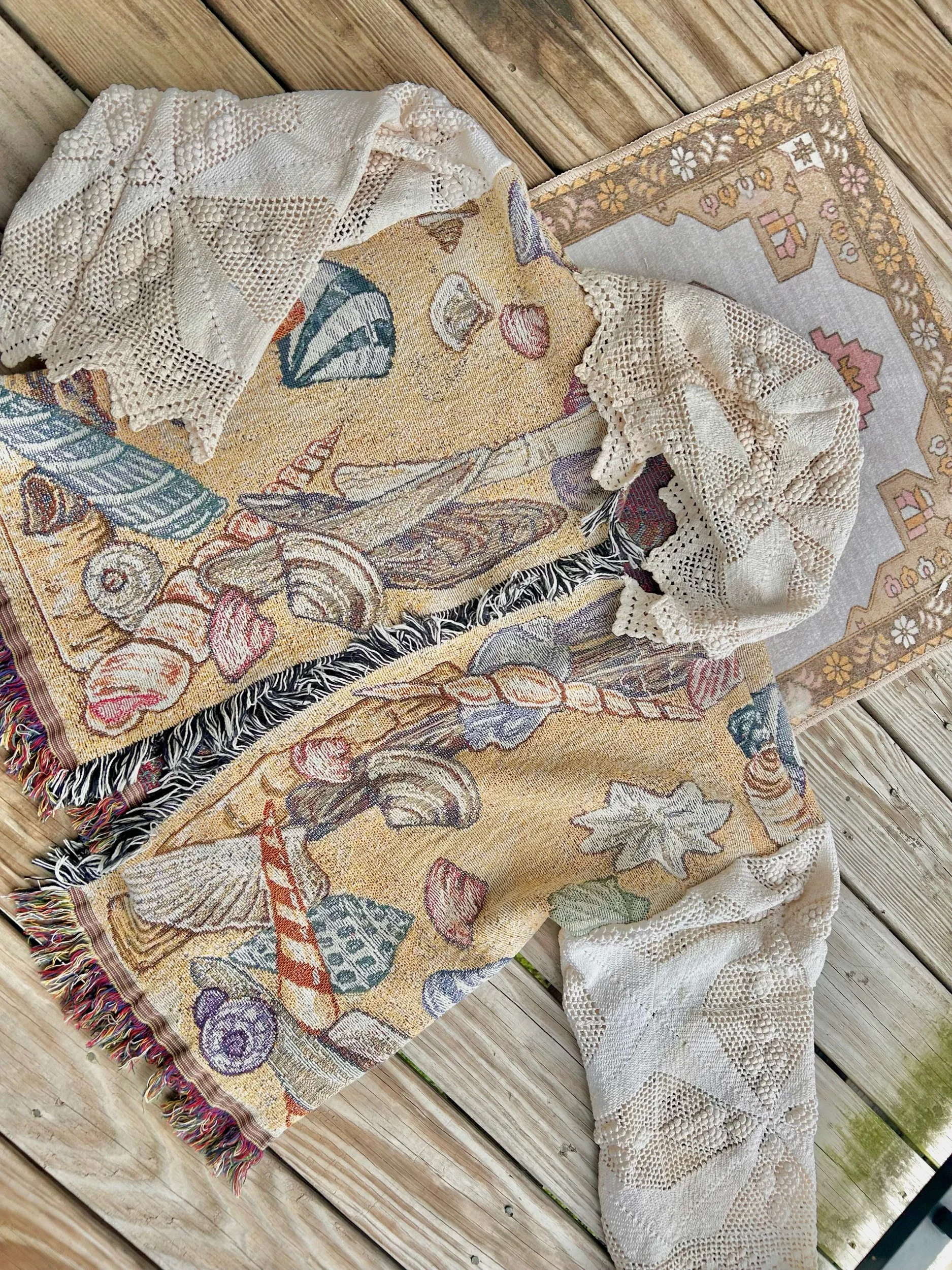 beautiful beach cardigan made from a vintage seashell blanket & antique crochet coverlet 🌅✨