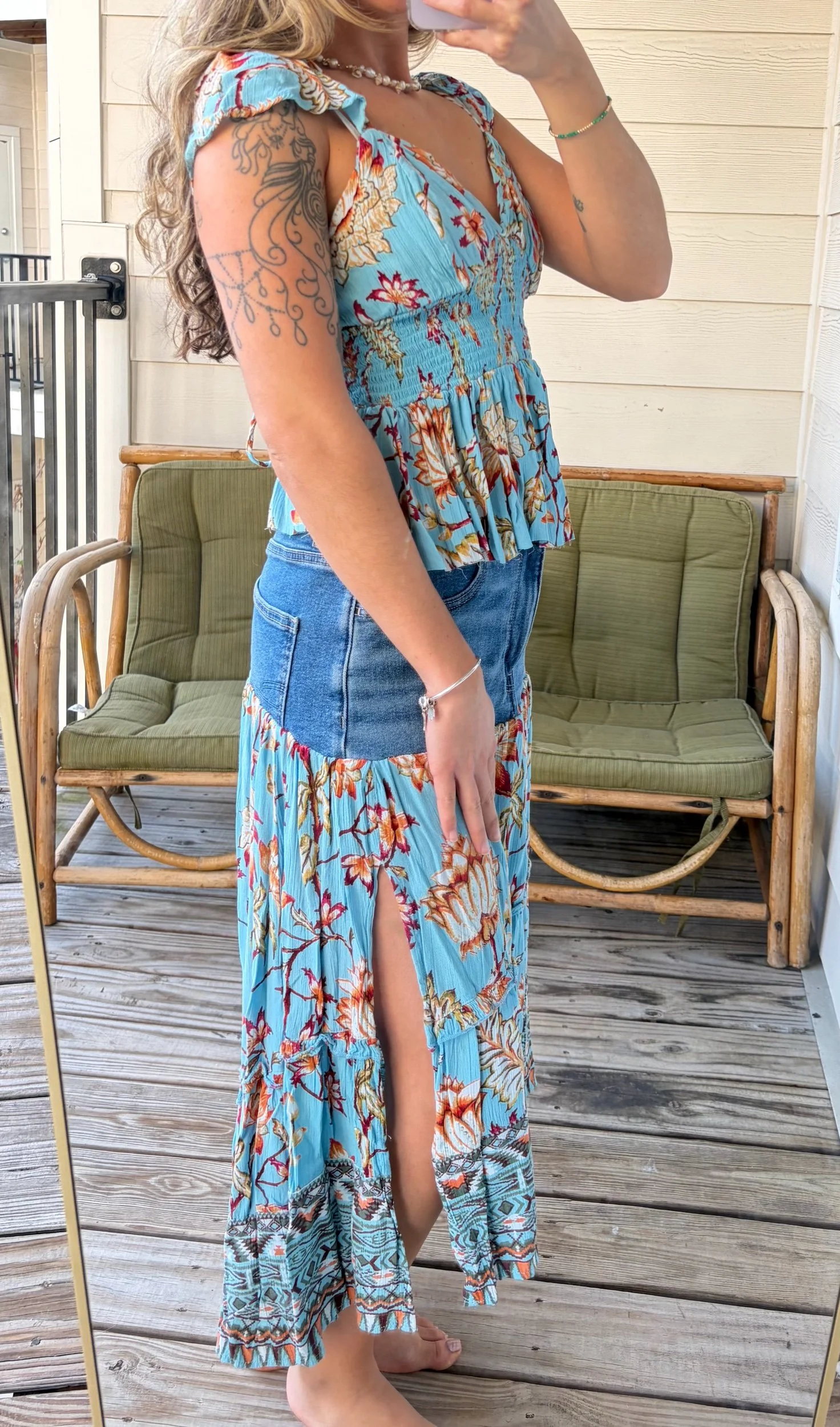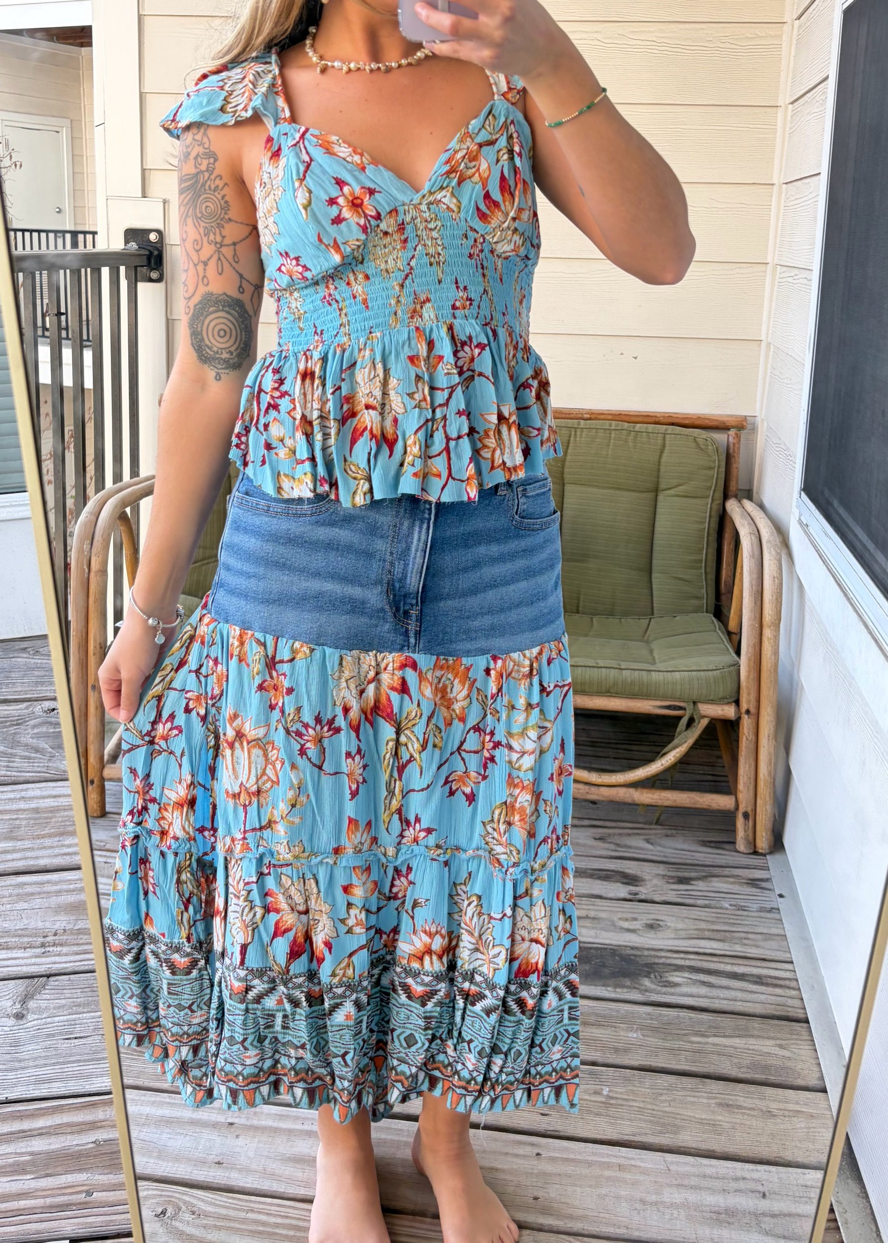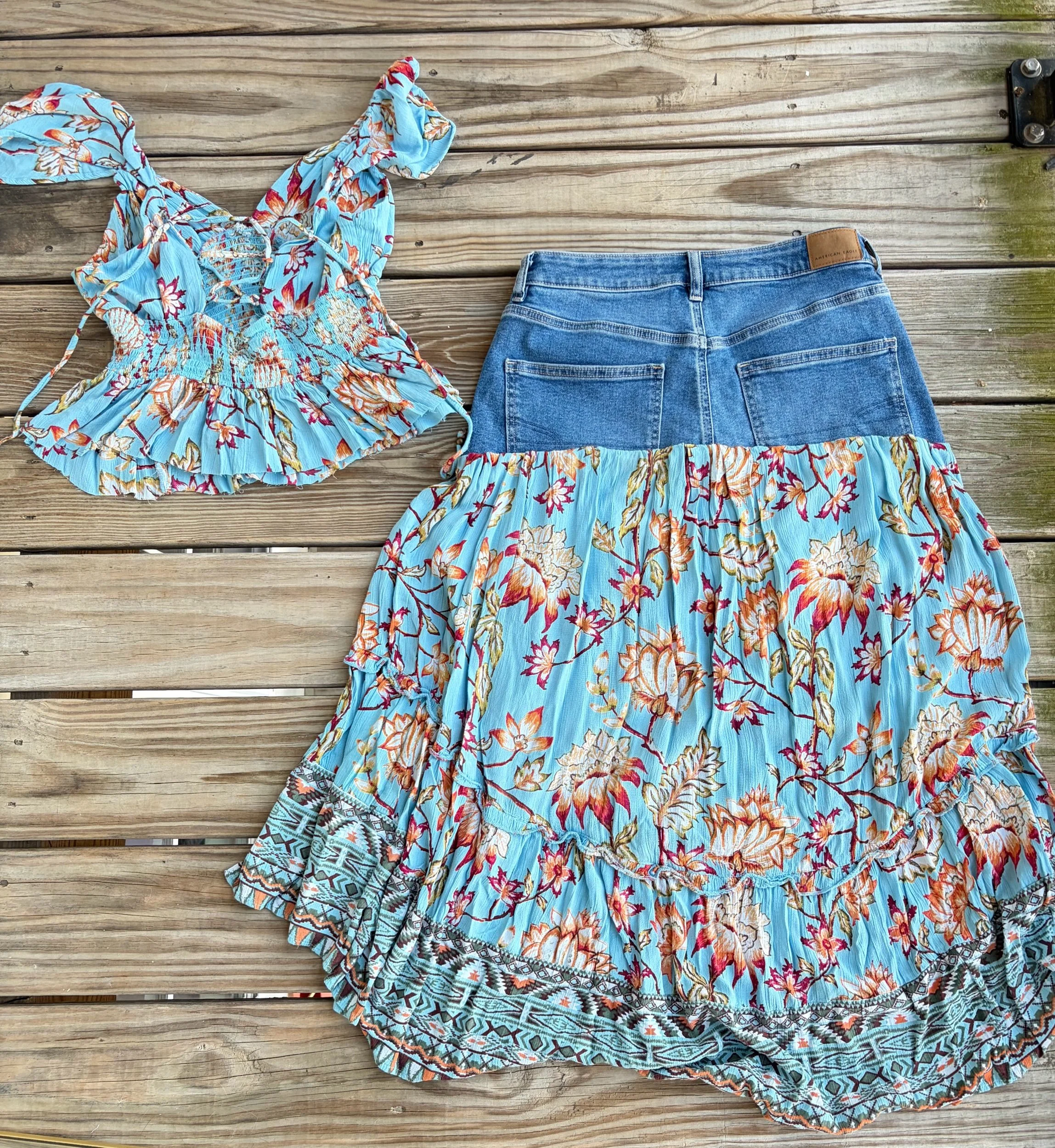 reworked dress and jeans into a one of a kind set 🦋